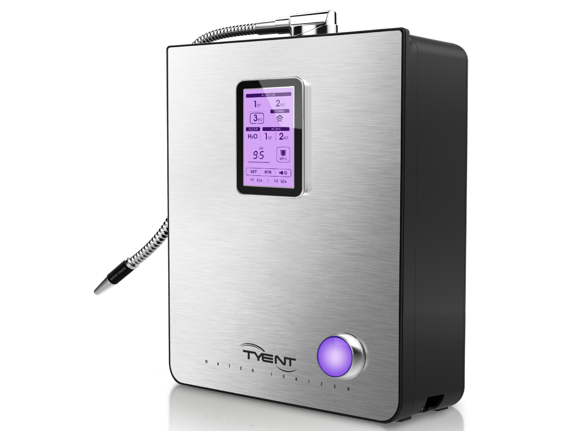 Sử dụng công nghệ điện giải chính thống, máy Tyent ứng dụng công nghệ điện phân giúp tạo ra nhiều loại nước khác nhau phục vụ đa dạng nhu cầu cho cả gia đình như: nước uống, nước nấu ăn, nước uống thuốc, pha sữa, nước uống cho trẻ, nước chăm sóc da, chăm sóc tóc và nước vệ sinh, khử khuẩn.