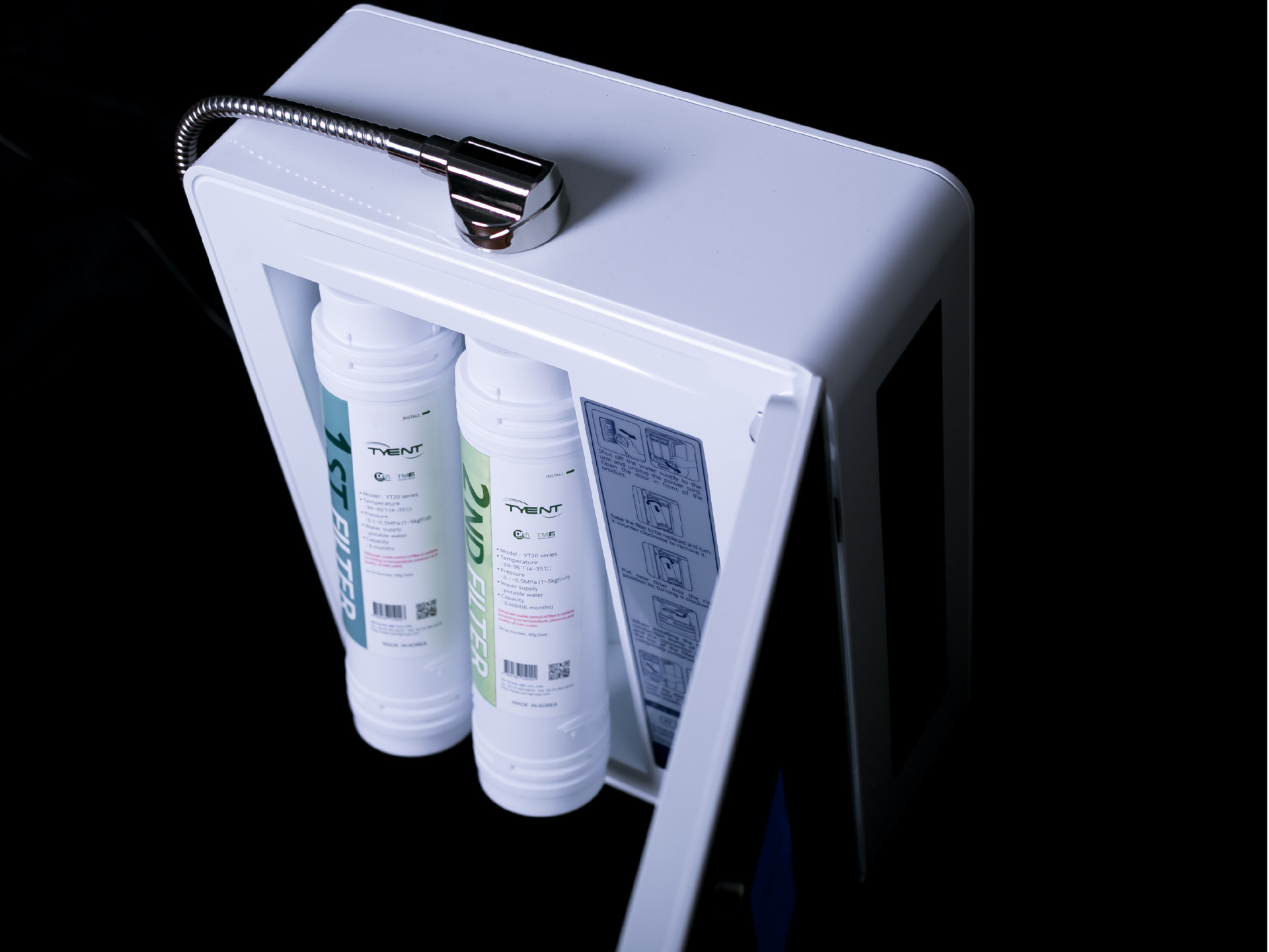 Máy tạo nước ion kiềm Tyent sử dụng 2 hệ thống lọc kép gồm công nghệ màng lọc UF và Nano GAC làm cho nước sạch tối đa và giữ trọn được nguồn khoáng chất tự nhiên có lợi cho cơ thể: Màng lọc UF với kích thước ~0,001 micron lọc sạch các tạp chất có kích thước nhỏ, loại bỏ kim loại, các tạp chất lơ lửng, các virus, vi trùng gây bệnh… Màng lọc Nano GAC có chức năng hấp thụ màu, mùi, các chất hữu cơ, Clo, chất ô nhiễm có trong nguồn nước.