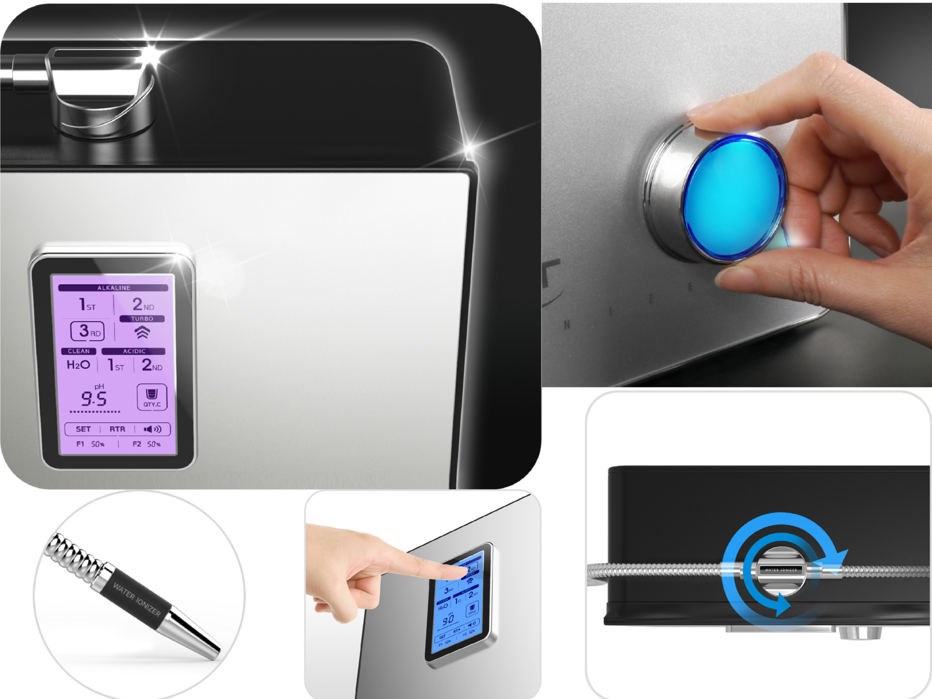 - Tạo được nhiều loại nước chức năng có dải pH rộng từ 2.5 – 11.5 phù hợp nhiều mục đích sử dụng như uống, nấu ăn, làm đẹp, sát khuẩn, pha sữa, ngâm rửa rau …
